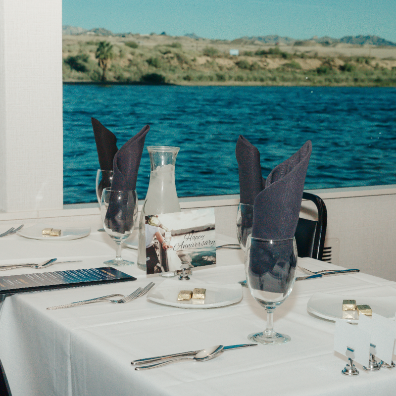 Looking for a unique dining experience in Laughlin? Set sail on our Grand Celebration Dinner Cruise, a two-hour sunset adventure along the scenic Colorado River. Enjoy a freshly prepared gourmet meal while taking in breathtaking river views—perfect for a romantic date night, family outing, or special celebration.